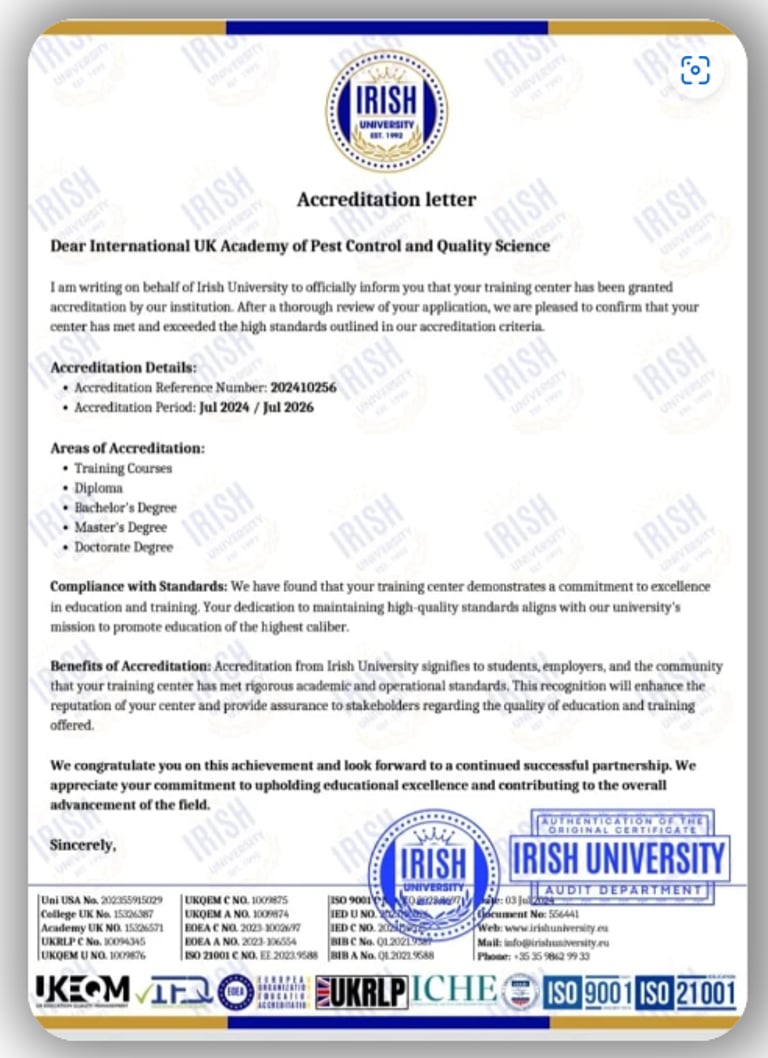 International British Academy For Pest Control And Quality Sciences